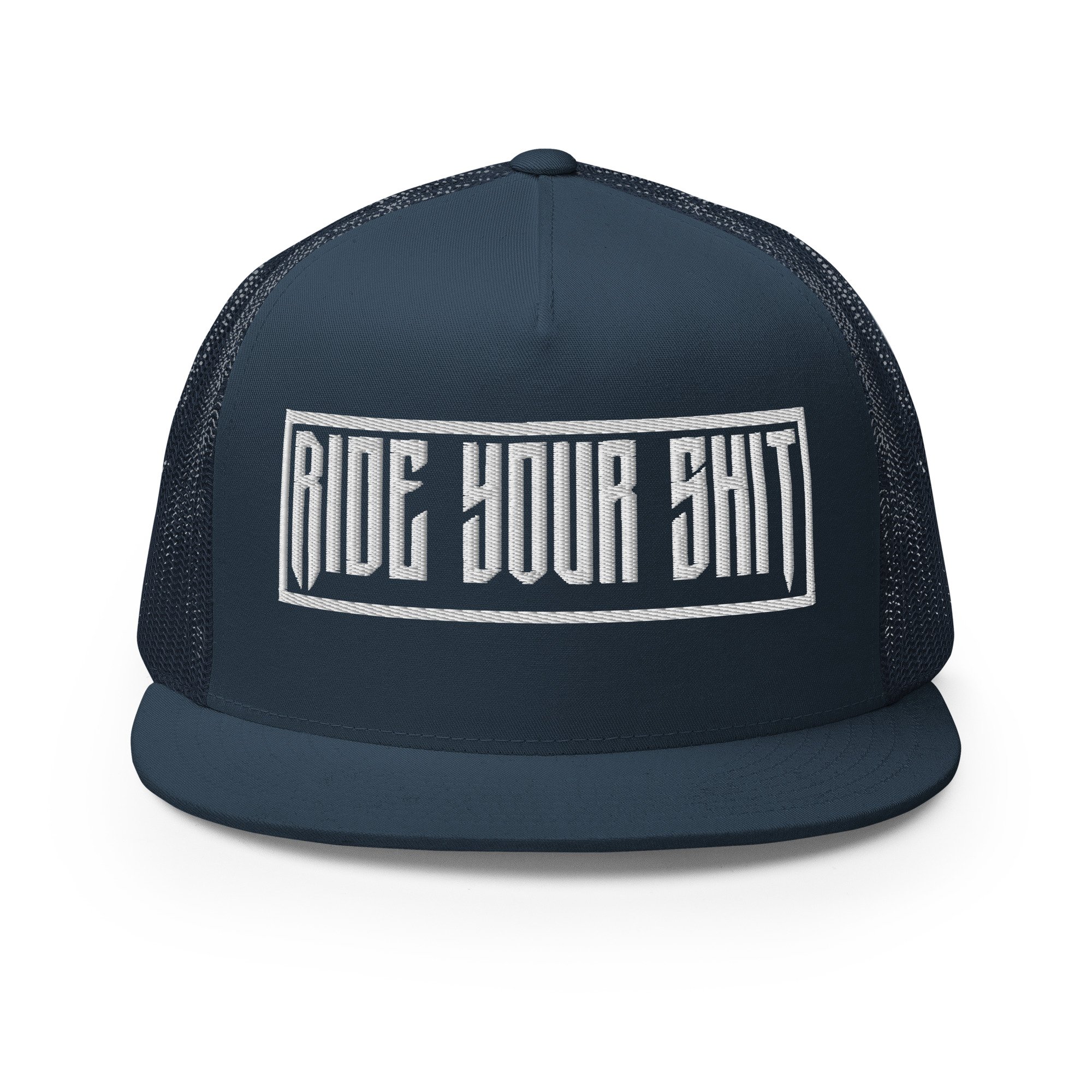 Classic trucker cap with our RIDE YOUR SHIT boxed logo embroidered on the front.